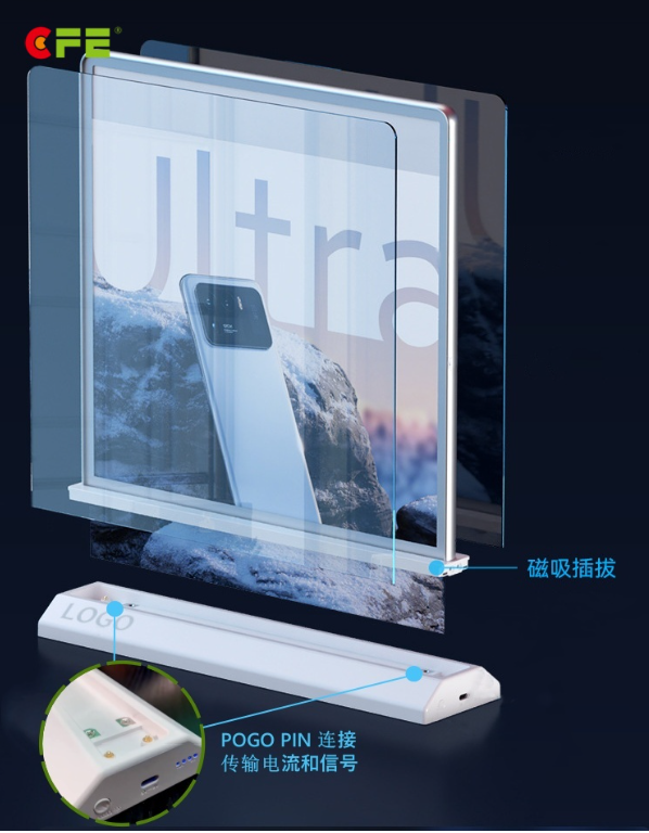 PogoPin磁吸连接解决方案应用于桌面广告灯箱的主要优势有以下6点: