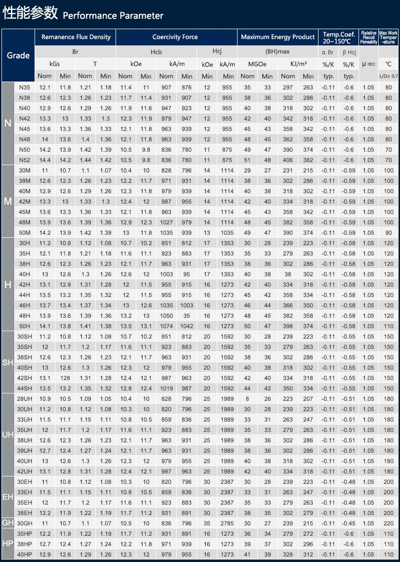 在选用钕铁硼磁铁时,CFE主要从工作温度和磁铁等级两个方面来考量。