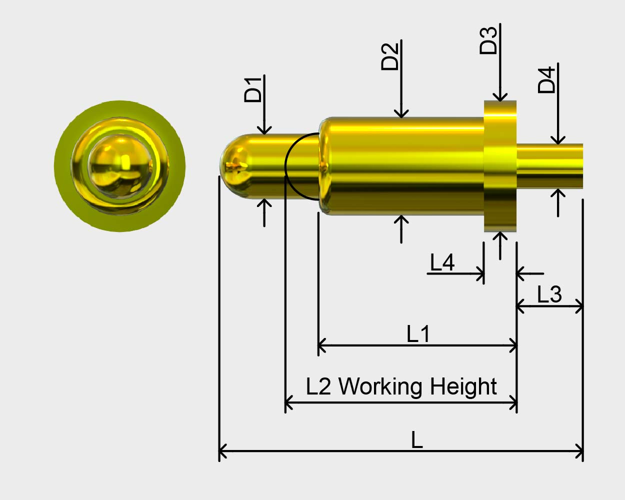 4 | PG1.2-1.4-6.1-BT | 黄铜C3604/镀金3μ" | 黄铜C3604/镀金3μ" | 不锈钢304 | ⌀0.80 | ⌀1.20 | ⌀140 | ⌀0.60 | 4.00 | 4.50 | 0.60 | 0.50 | 6.10 | 40±15gf | |
