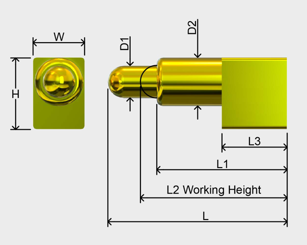 针轴 | 针管 | 弹簧 | D1 | D2 | L1 | L2 | L3 | L | W | H | 弹力 | |||